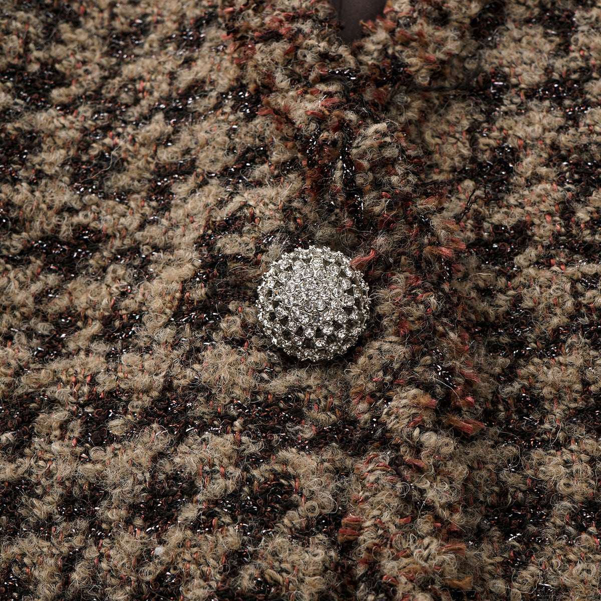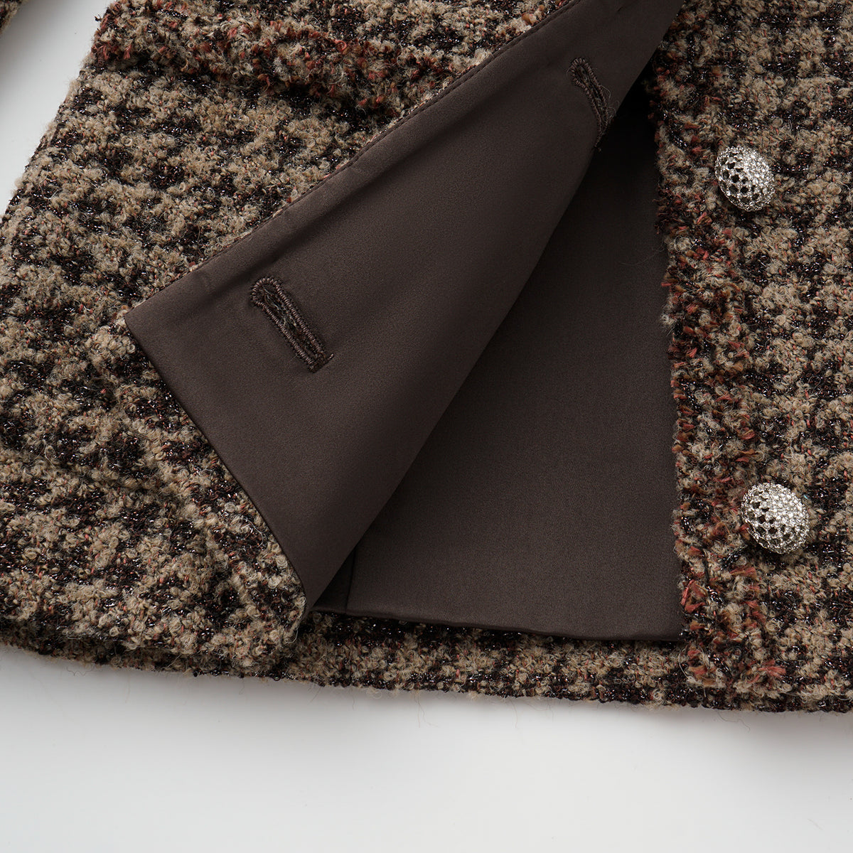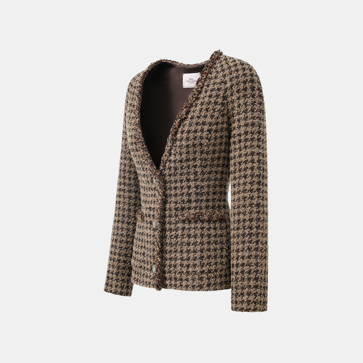 妳可以選擇將花呢外套搭配一件簡約素T與牛仔褲,輕鬆應對日常通勤;也能將精緻的立體蕾絲上衣與寬腿長褲搭配,在週末午後的藝文活動中展現層次品味。這不僅是一套衣服,而是一種「高級但不遙遠」的穿衣態度,是妳風格語彙的延伸,而非束縛。