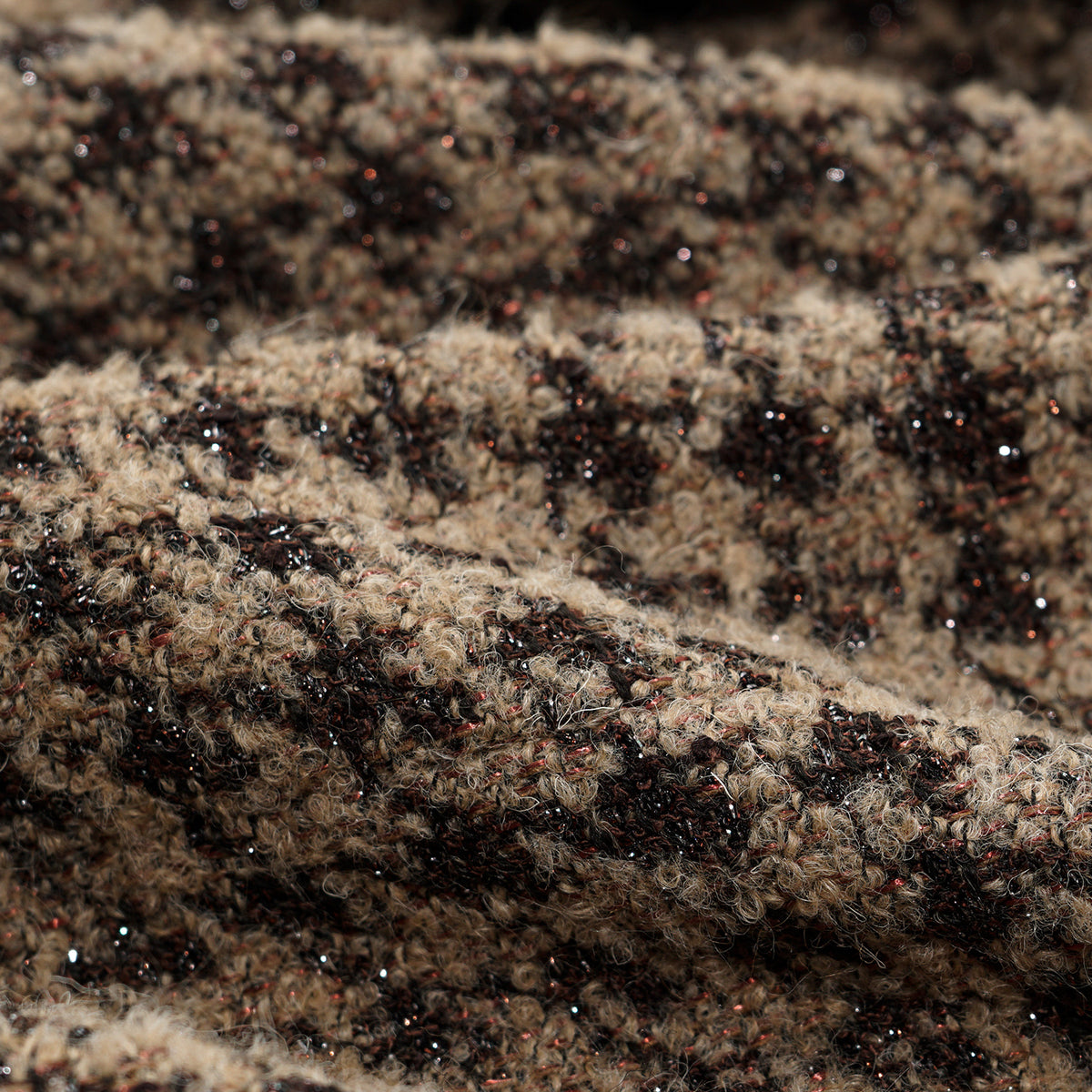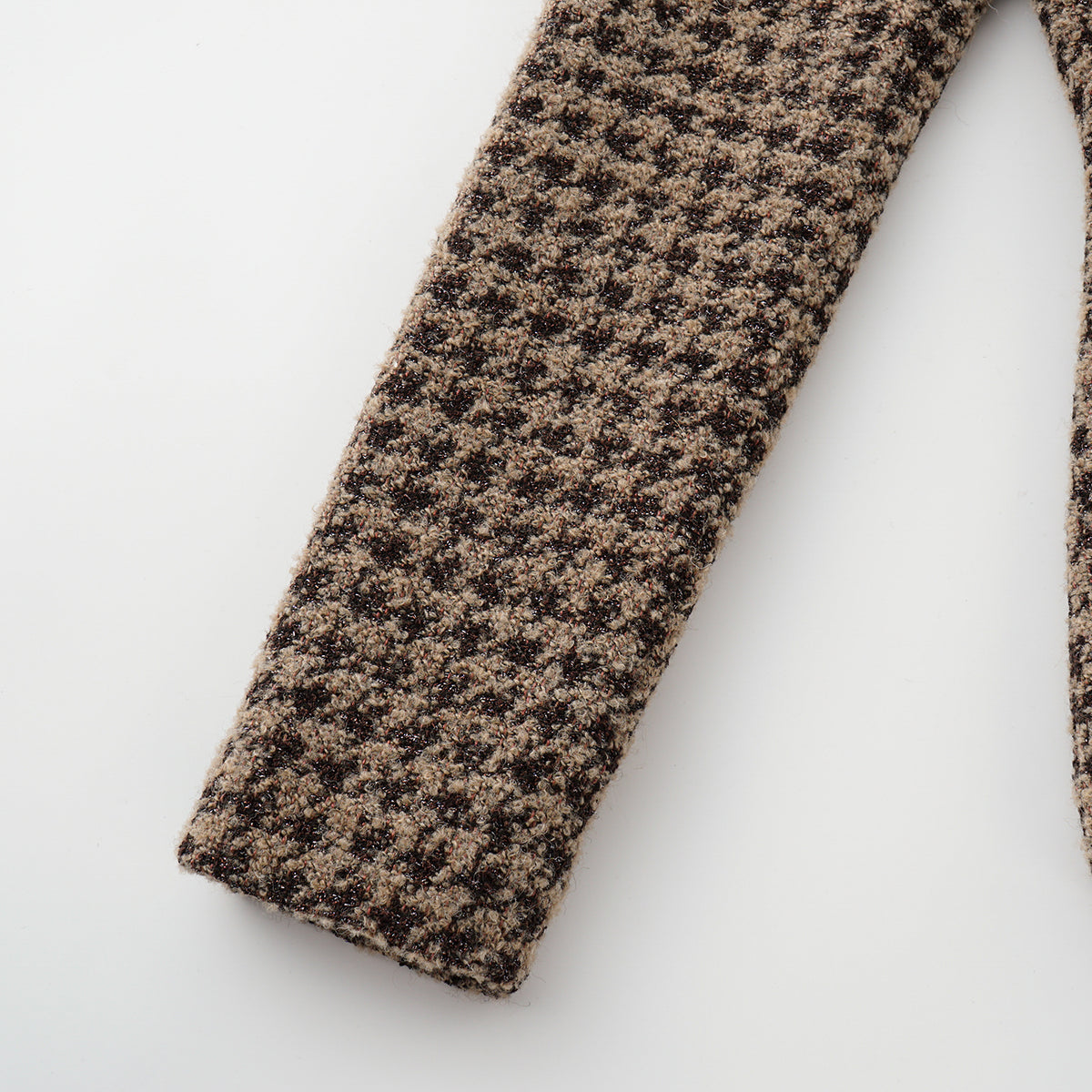 義大利星紗簇絨緹花以細緻千鳥格織構出立體暖度,亮絲如微光潤進纖維間,蓬鬆卻不失結構。觸感柔軟而有份量,彷彿將時間的溫度與庭園的微光一併收進布面,低調卻耐人尋味。