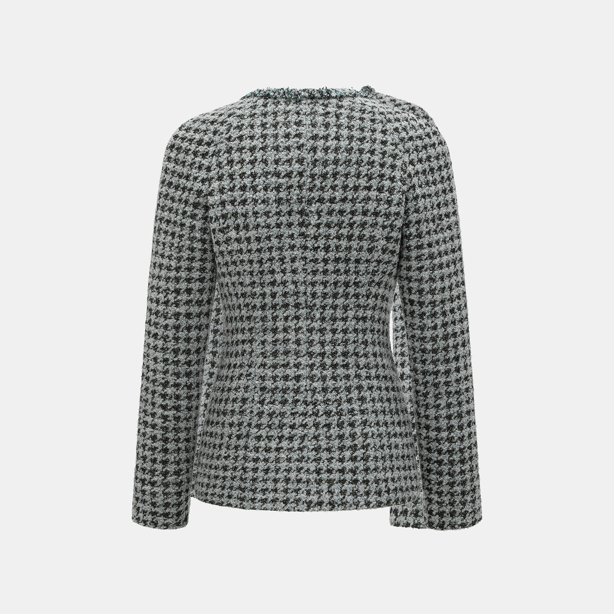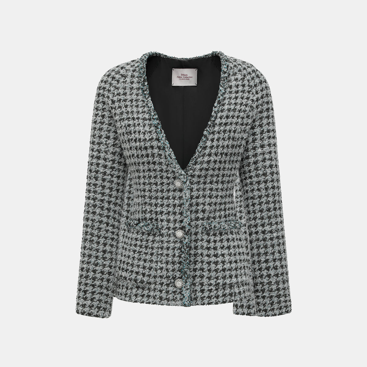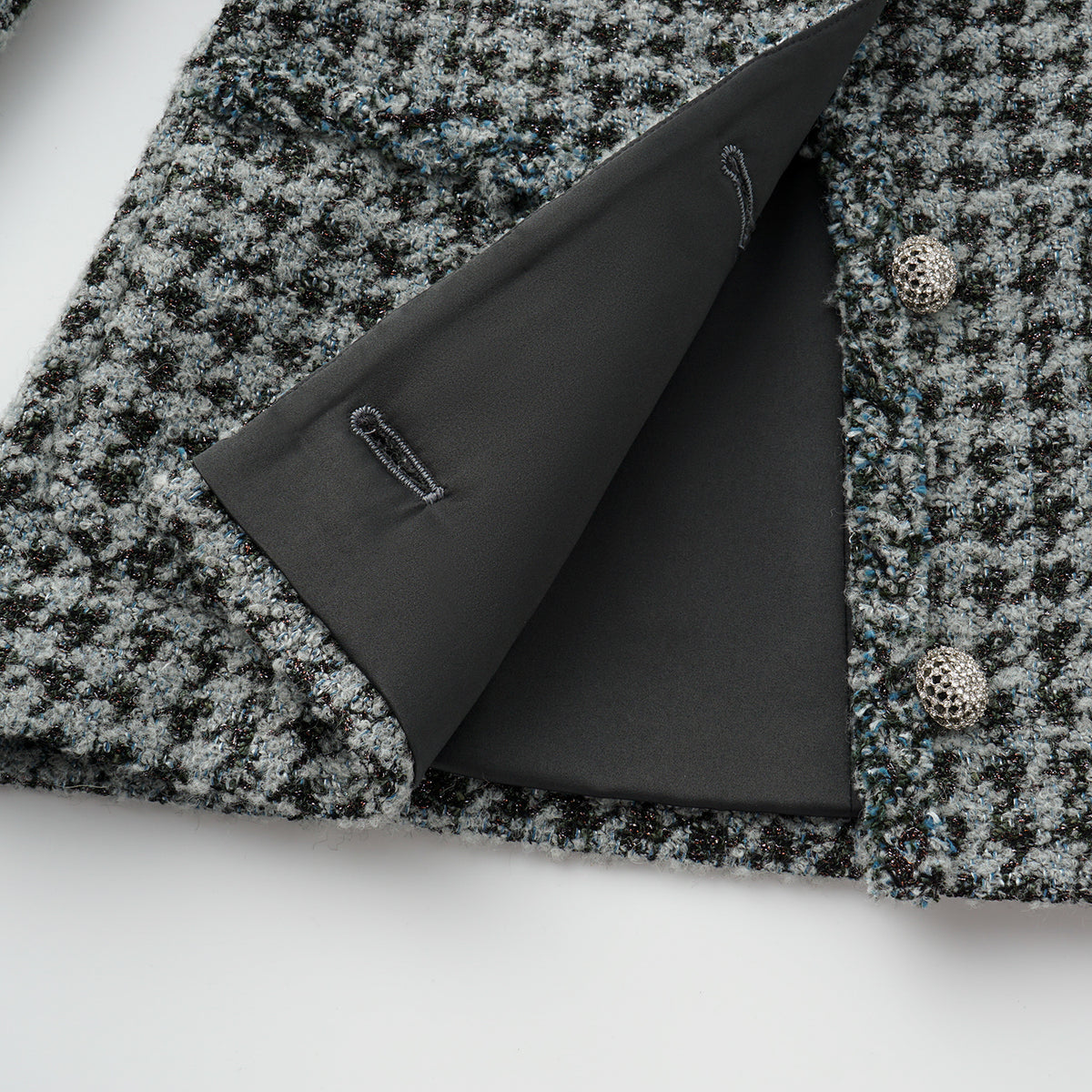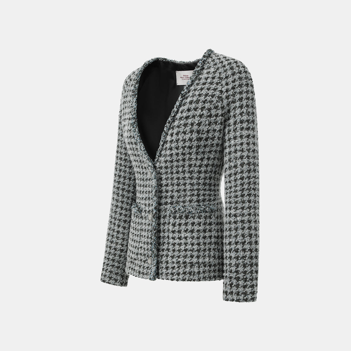 妳可以選擇將花呢外套搭配一件簡約素T與牛仔褲,輕鬆應對日常通勤;也能將精緻的立體蕾絲上衣與寬腿長褲搭配,在週末午後的藝文活動中展現層次品味。這不僅是一套衣服,而是一種「高級但不遙遠」的穿衣態度,是妳風格語彙的延伸,而非束縛。