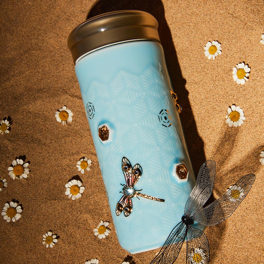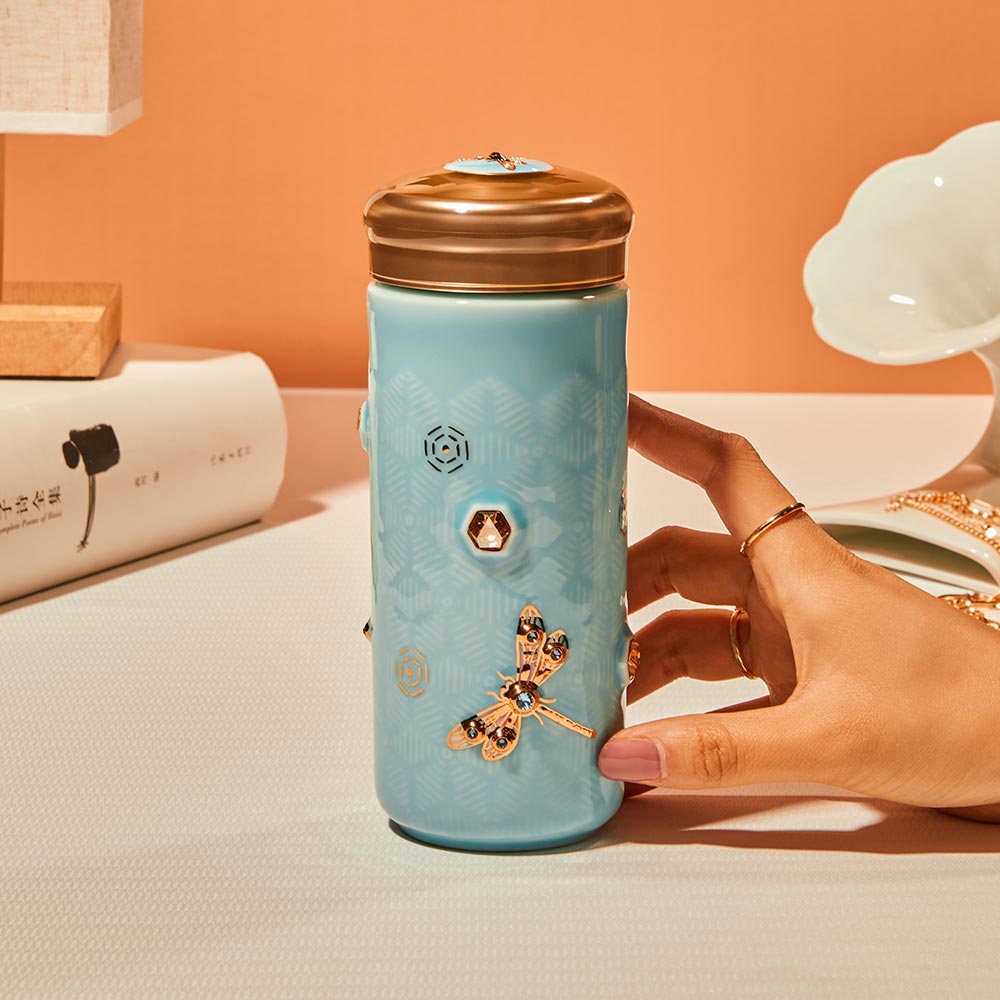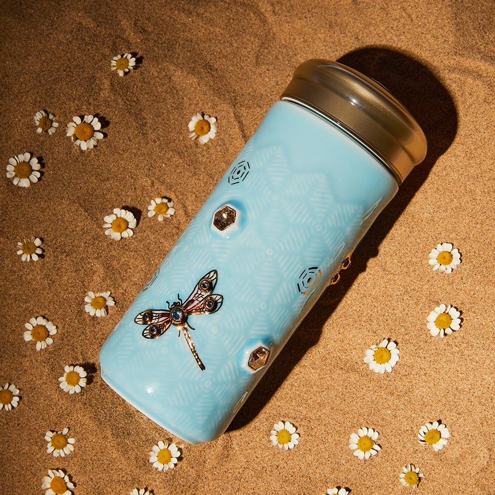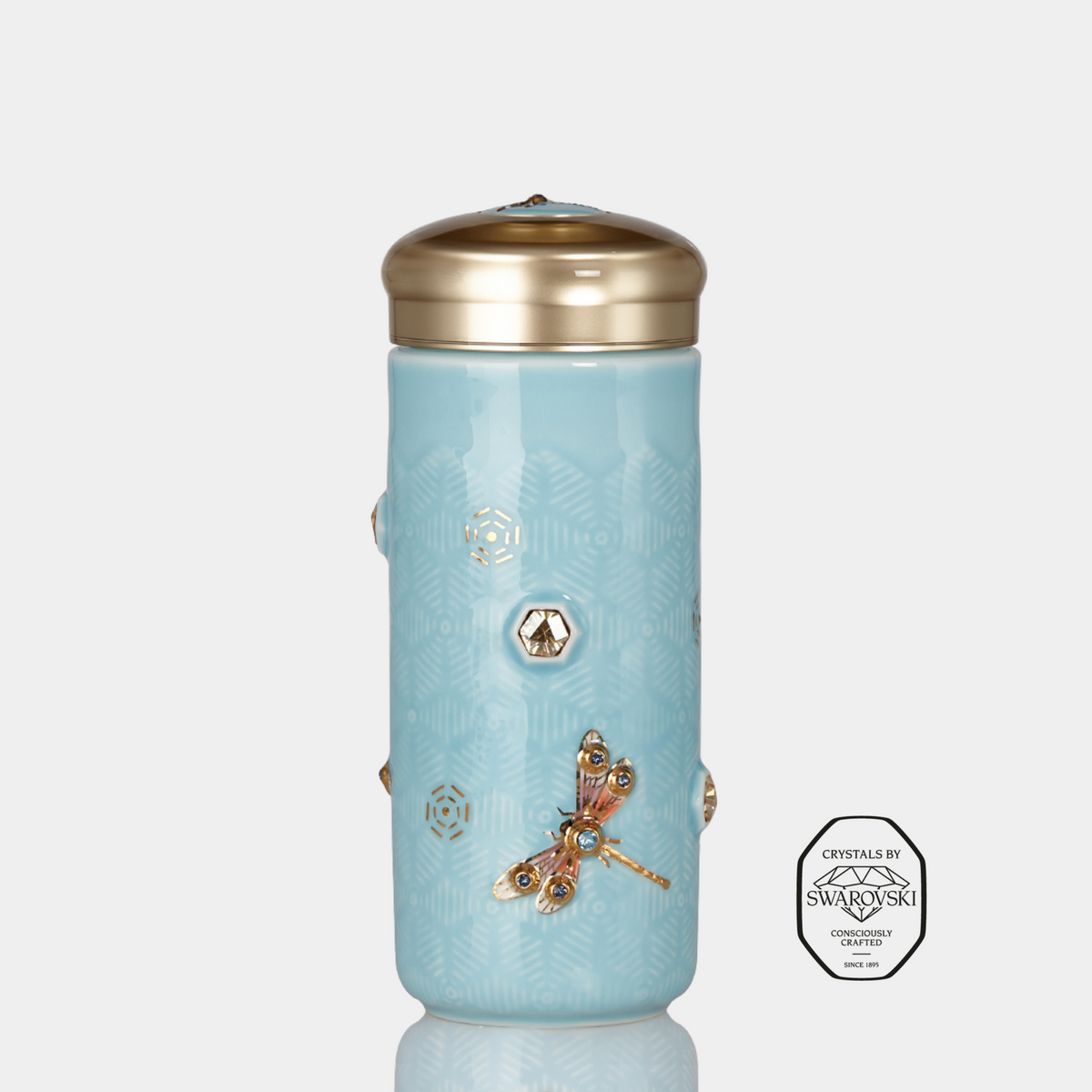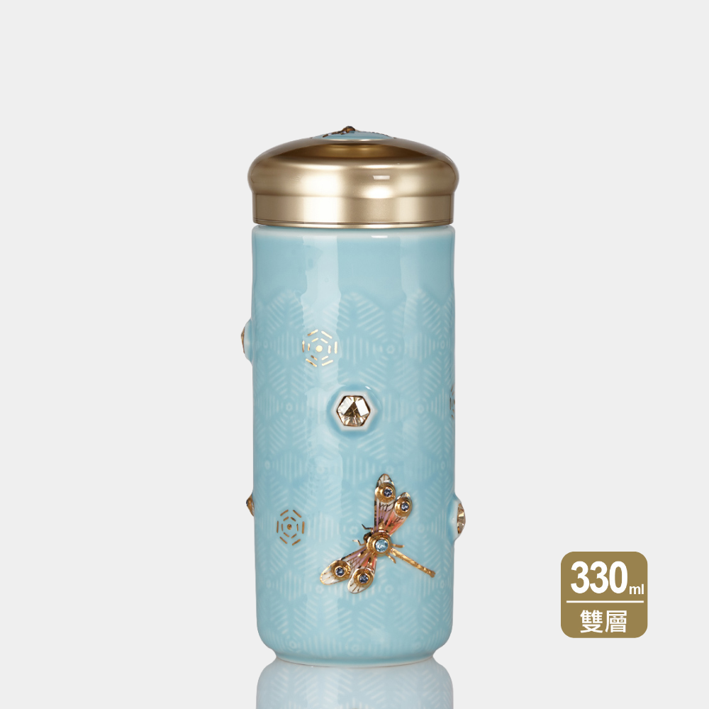 乾唐軒 吉星蜻投意合彩金水晶隨身杯─ 淺水藍彩金晶