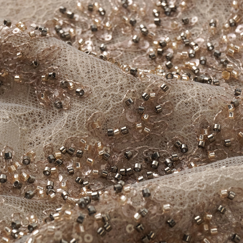 歐根紗由極細緊密的絲線或合成纖維織成,透明卻堅挺,能營造層次與空氣感。它的最大特點是「輕」與「挺」並存——能夠撐起裙襬的輪廓,卻又幾乎沒有重量。無論是婚紗、晚禮服還是舞台服飾,歐根紗總能帶來一種夢幻的體積感。