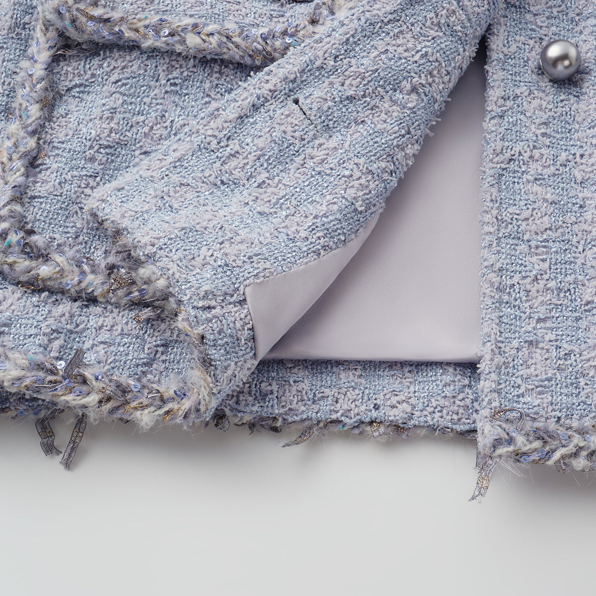 妳可以選擇將花呢外套搭配一件簡約素T與牛仔褲,輕鬆應對日常通勤;也能將精緻的立體蕾絲上衣與寬腿長褲搭配,在週末午後的藝文活動中展現層次品味。這不僅是一套衣服,而是一種「高級但不遙遠」的穿衣態度,是妳風格語彙的延伸,而非束縛。