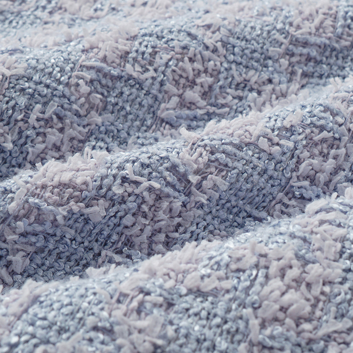 柔霧紫調的簇絨面料,細膩如黃昏微光,映現溫柔而深邃的質感。輕盈卻具結構感,內裡平滑親膚,於靜謐光澤間流露細緻與力量的平衡。