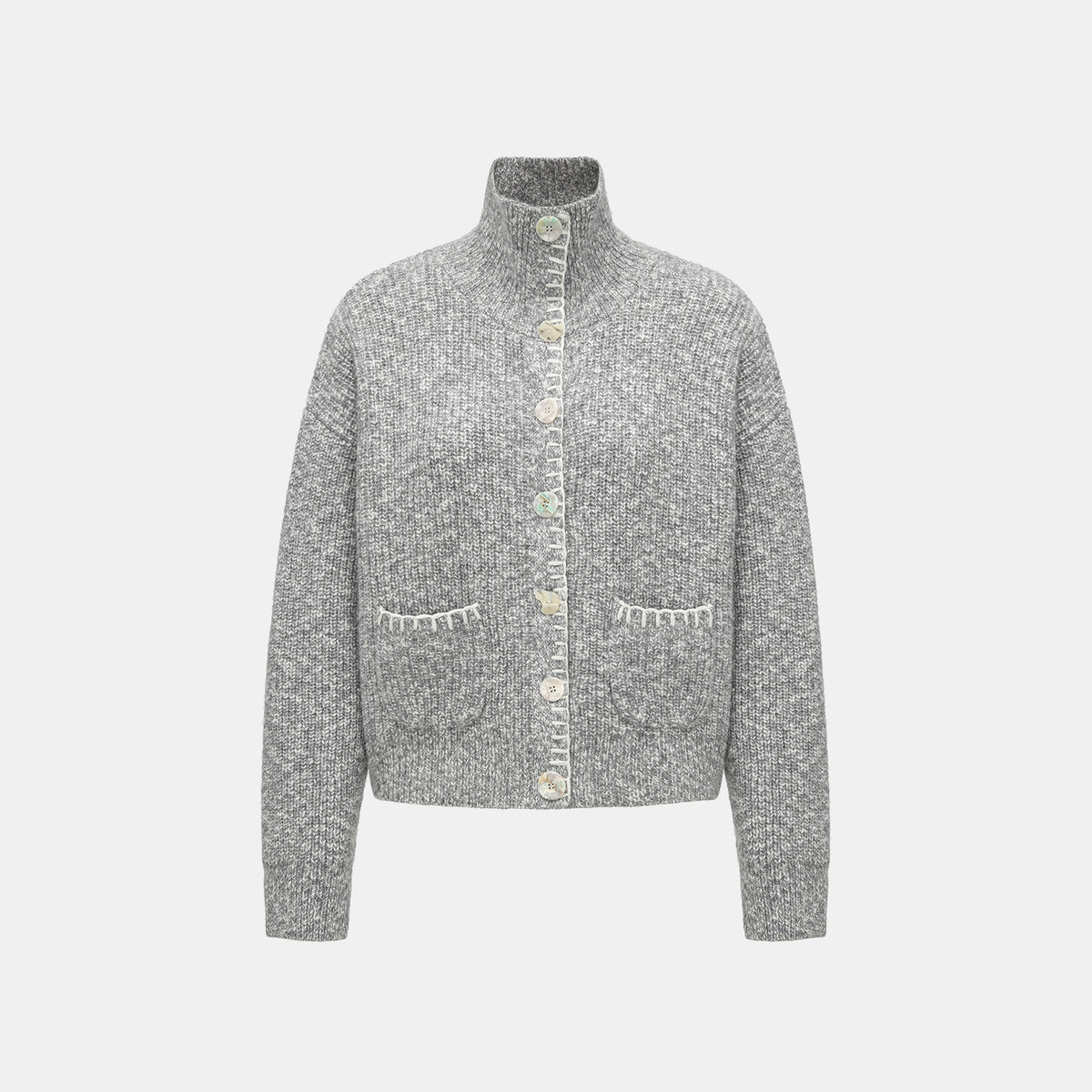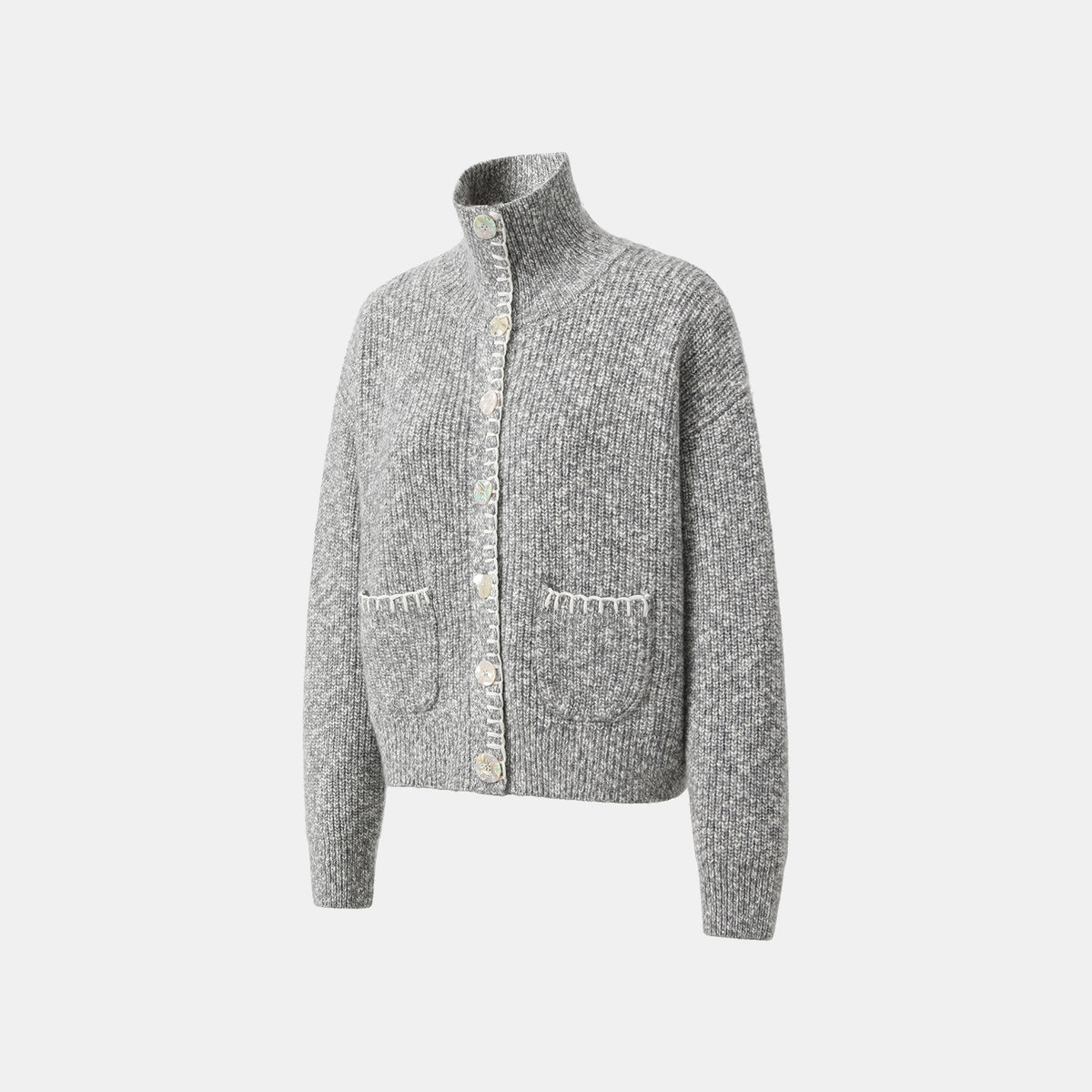 “Winter Diary” 100% Cashmere霧染細針羅紋邊飾高領針織外套—Soft Rain雨的氣息