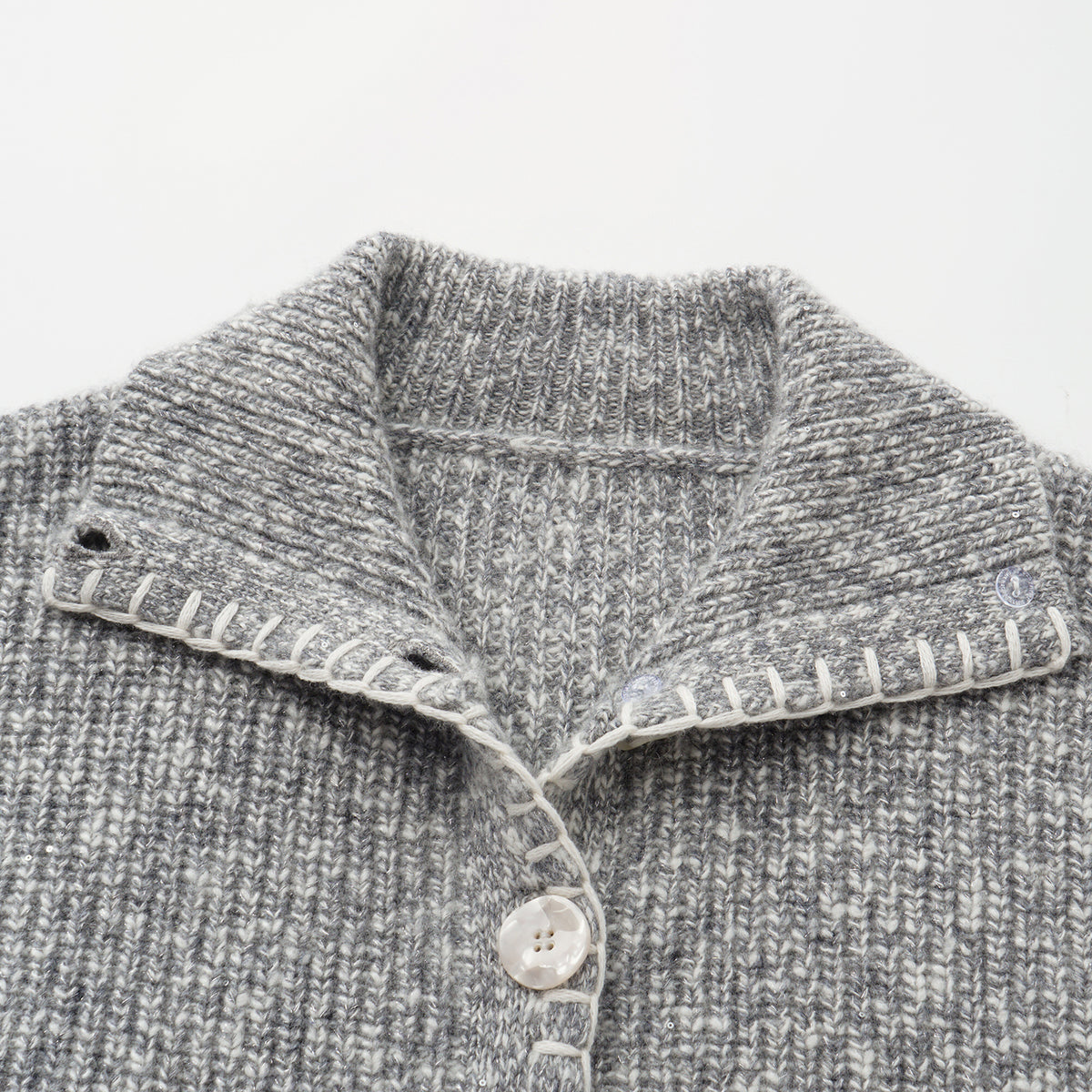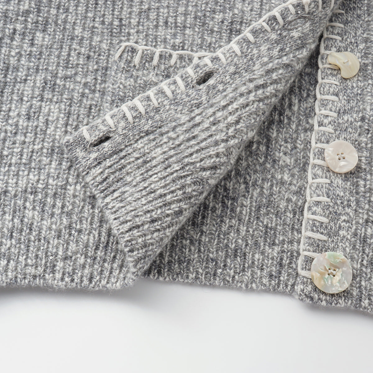 以100%山羊絨編織,霧染色澤如冬日微光。細針羅紋交錯出柔軟層次,輕盈卻溫潤,觸感如霧、如雪,靜謐中閃爍著微光的詩意。