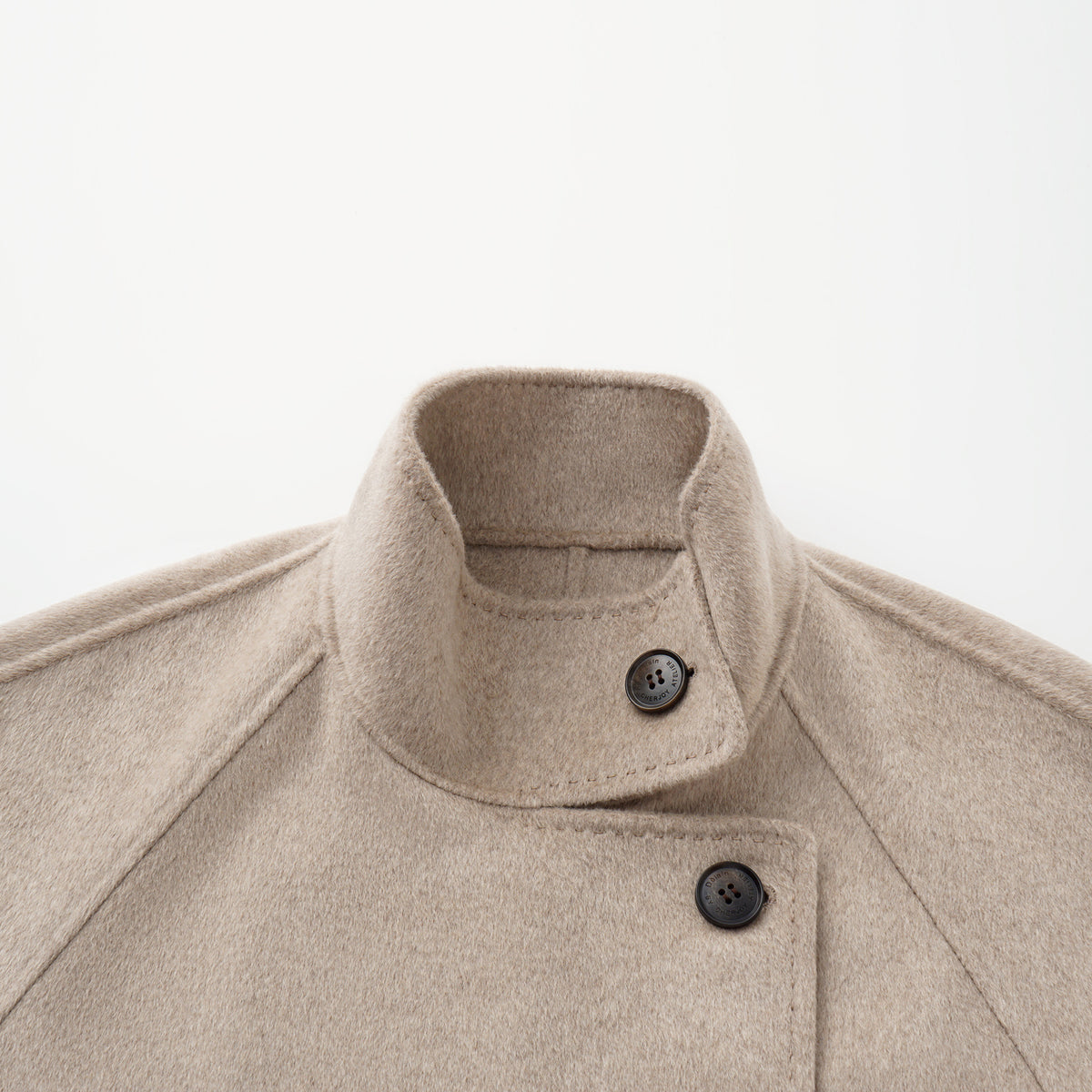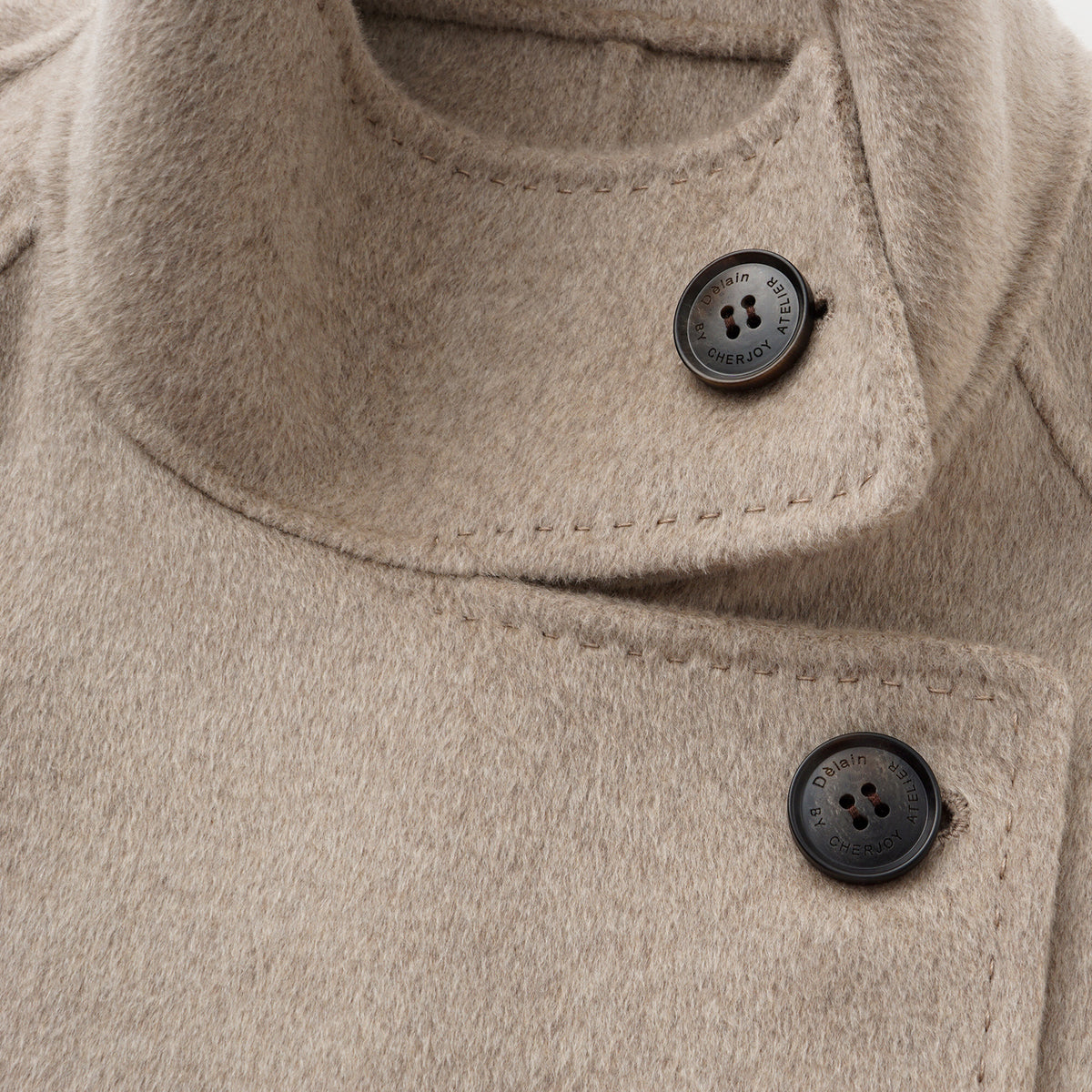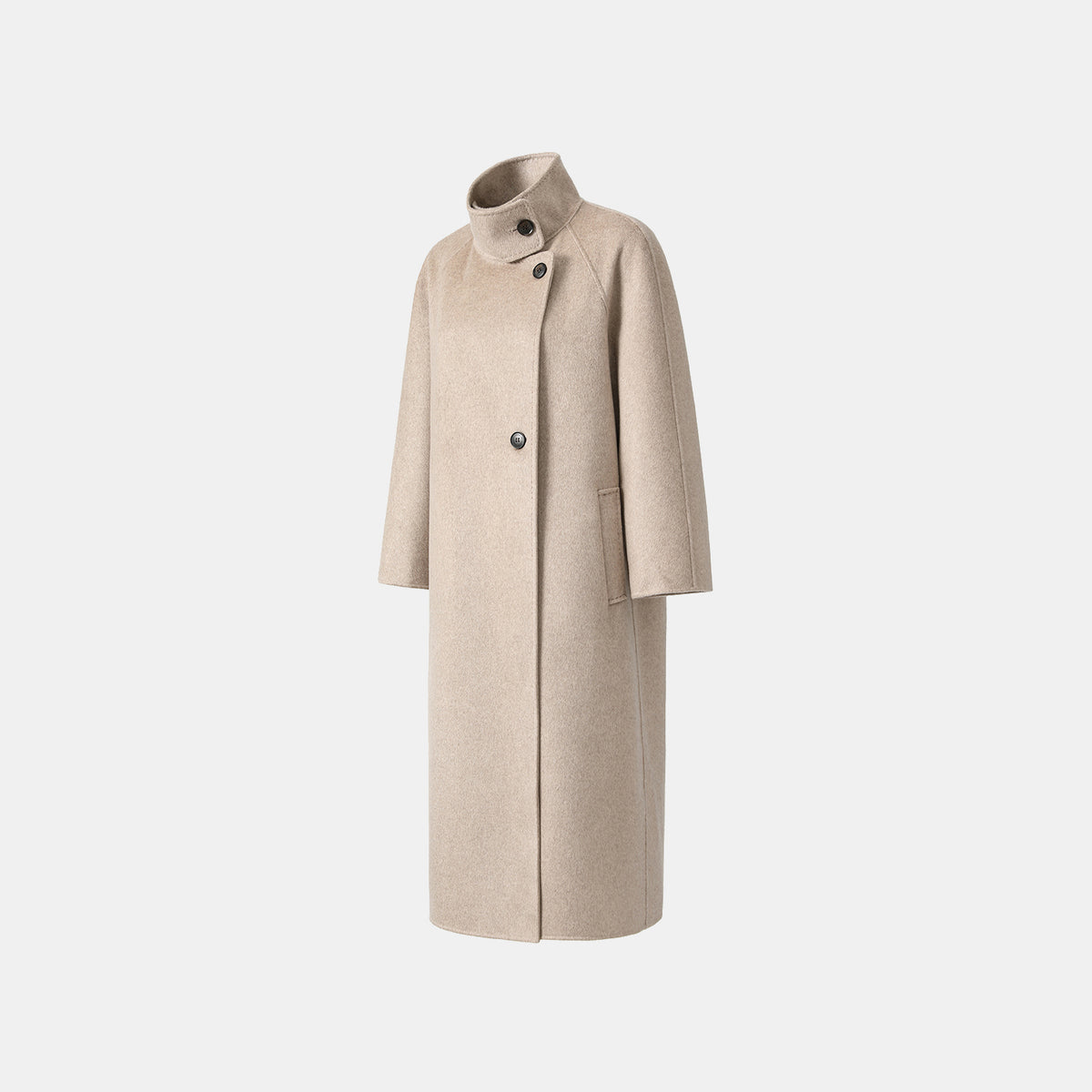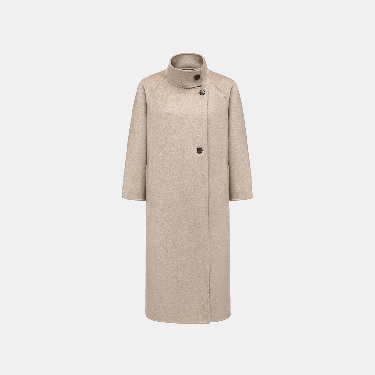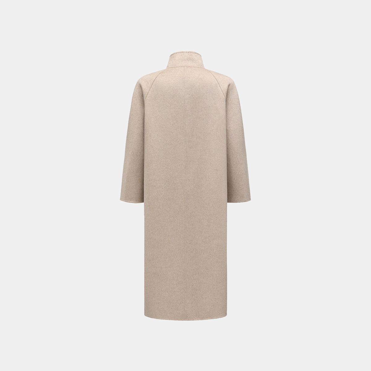 “Winter Diary” 100%Cashmere 雙面超細長絨工藝立領側扣長大衣—Twilight Sand 初冬暖砂