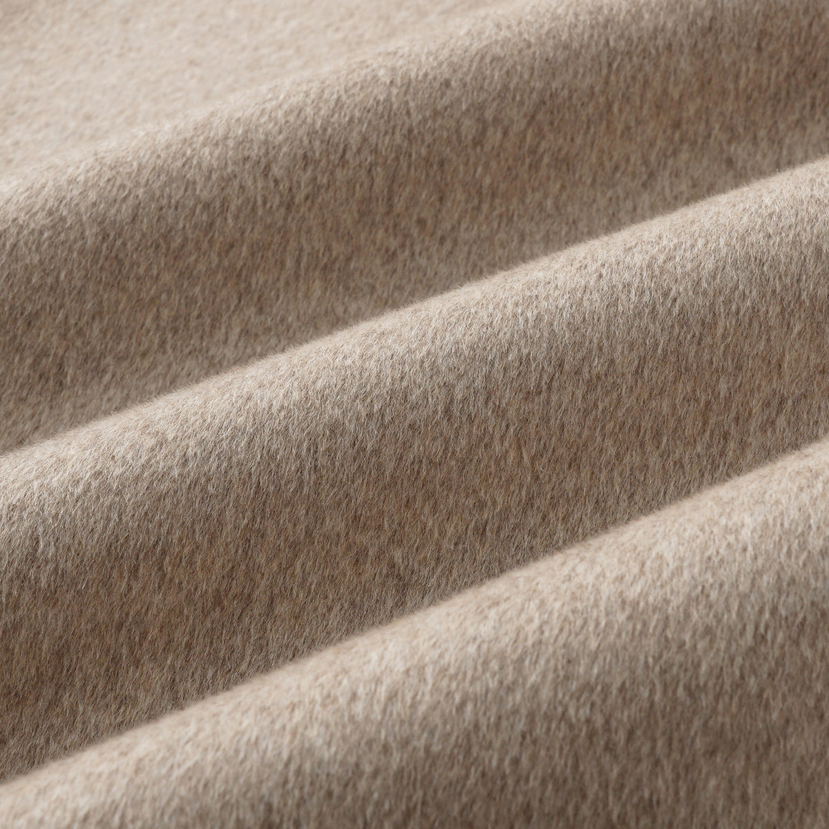 以100%Cashmere雙面細絨工藝織就,柔潤如霧,輕盈卻溫厚。布面細緻如晨光拂雪,低調光澤間隱約流動著冬日的靜謐與暖意。