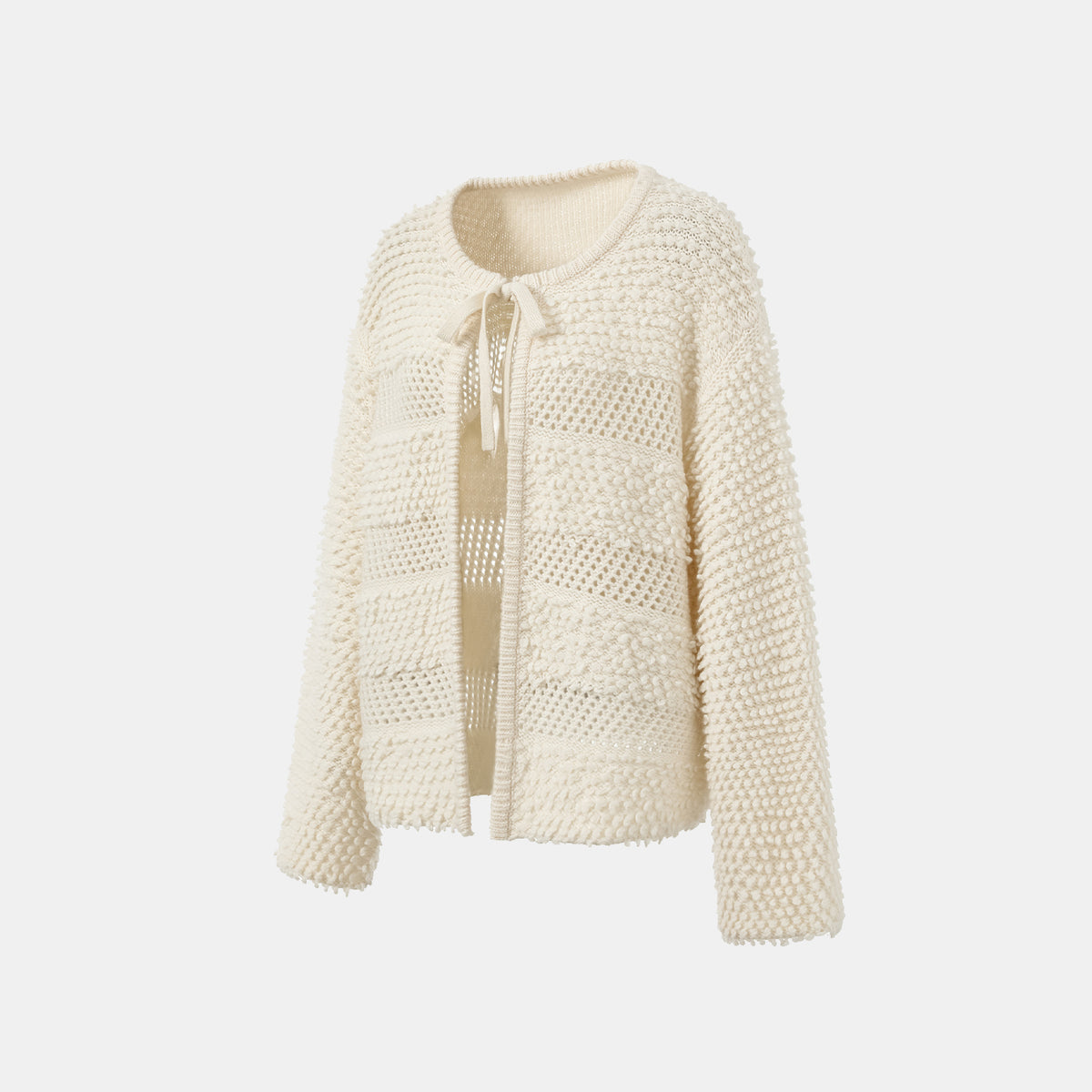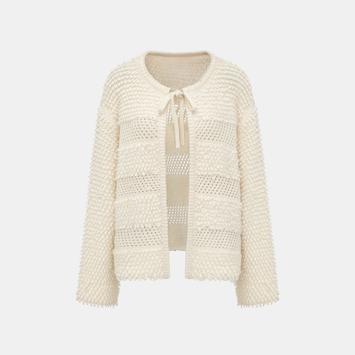 “Winter Diary” 100% Cashmere雲絨立體羽圈針織開衫—Cotton Haze棉野之曦