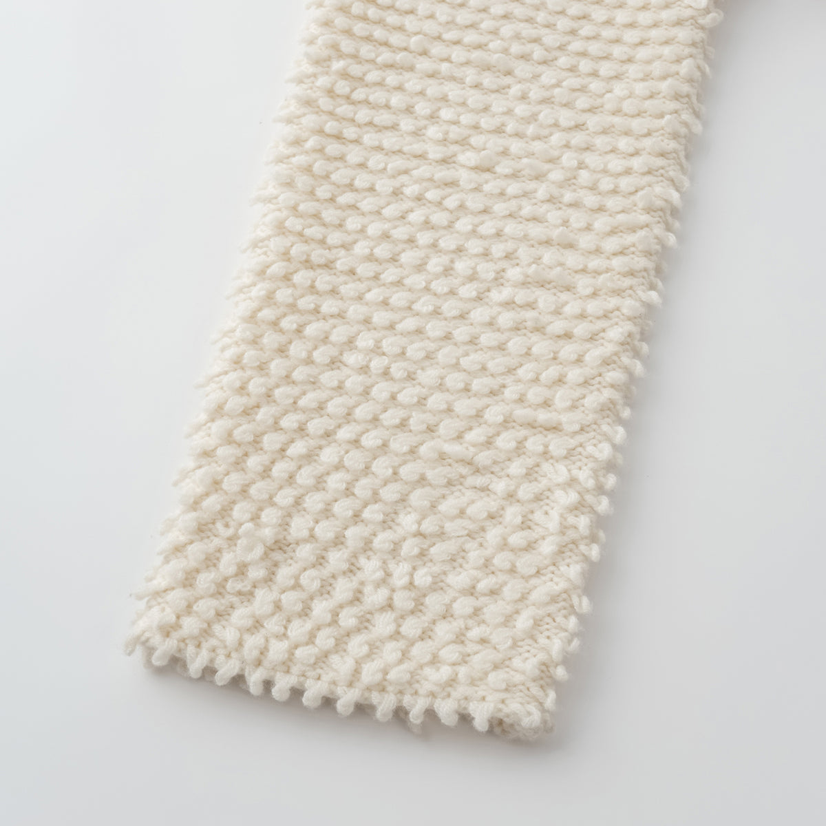以柔軟的 Cashmere 雲絨 混紡線織成,層疊羽圈紋理輕盈細膩,觸感柔滑如霧,溫柔包裹秋日氣息。