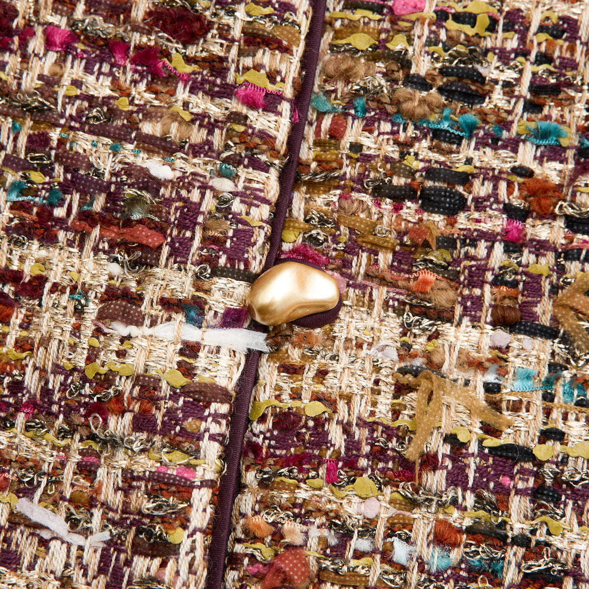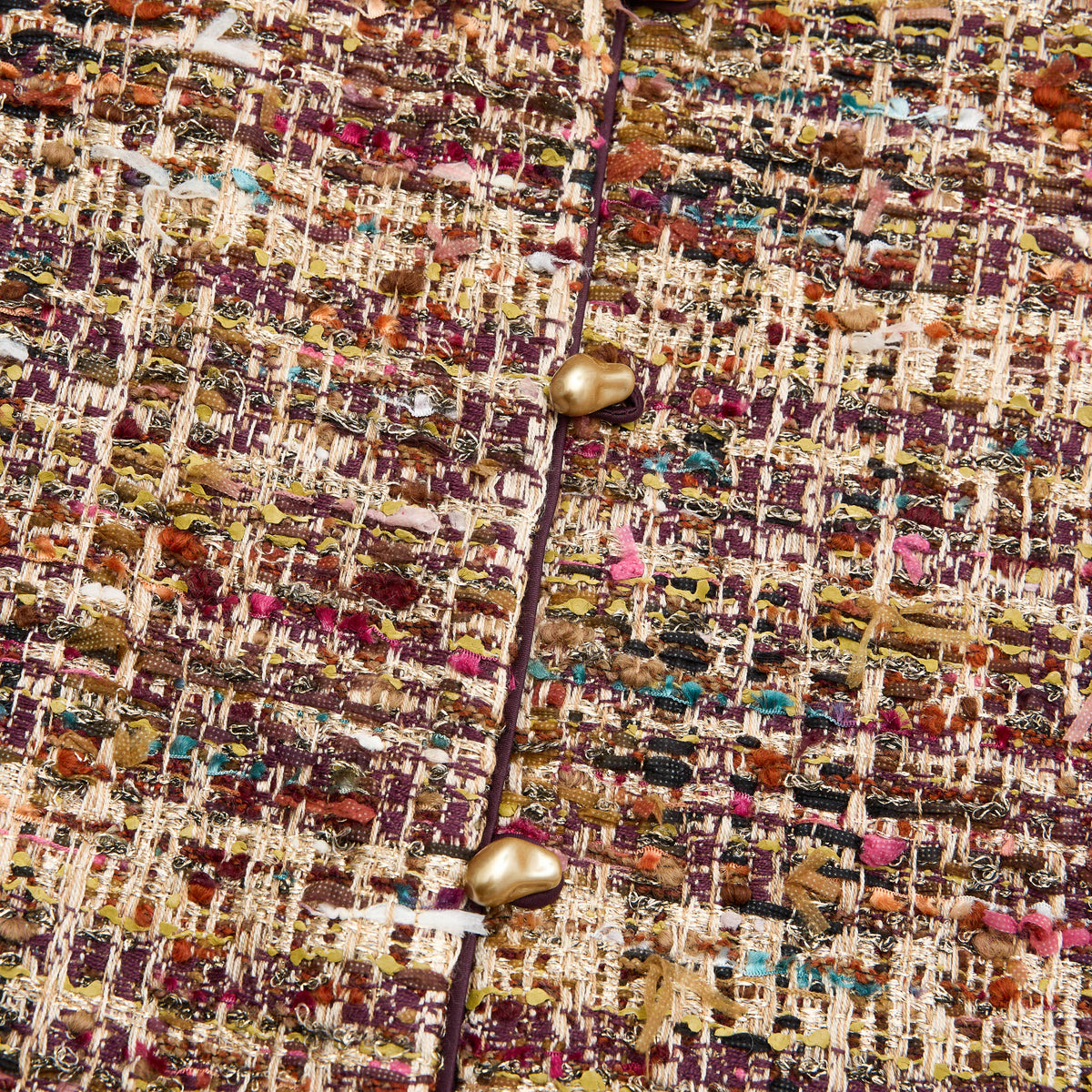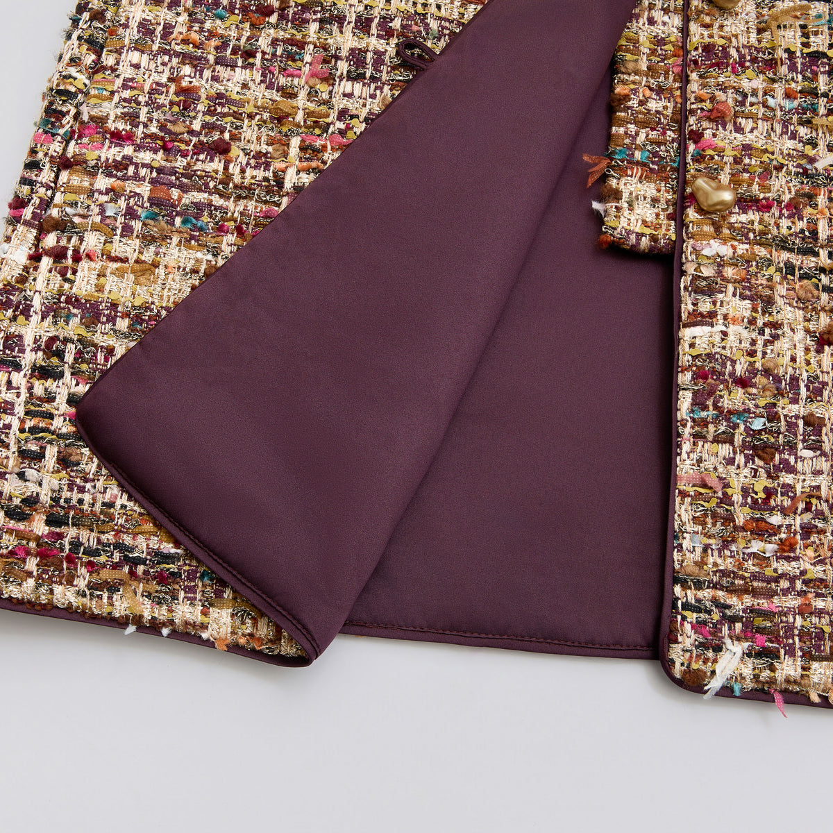 法國彩織圈絨花呢以多層紗線交織,圈絨立體浮起,柔軟而富層次。細碎色點與隱約金線如畫布上的筆觸,在光影中流動,溫潤中帶有靜靜綻放的藝術氣息。