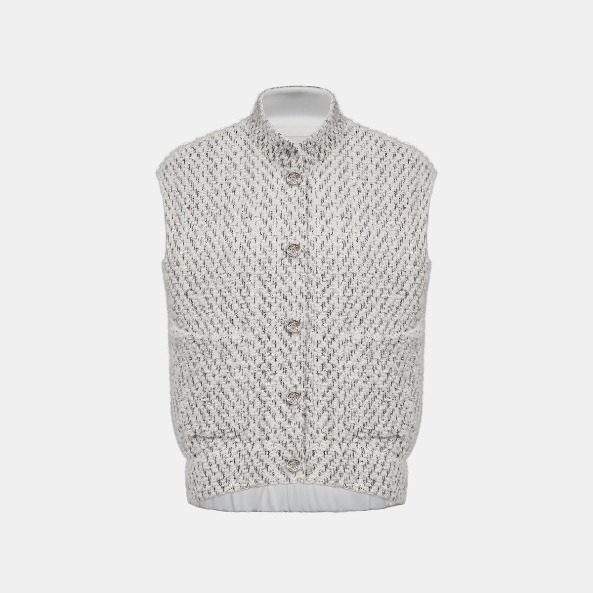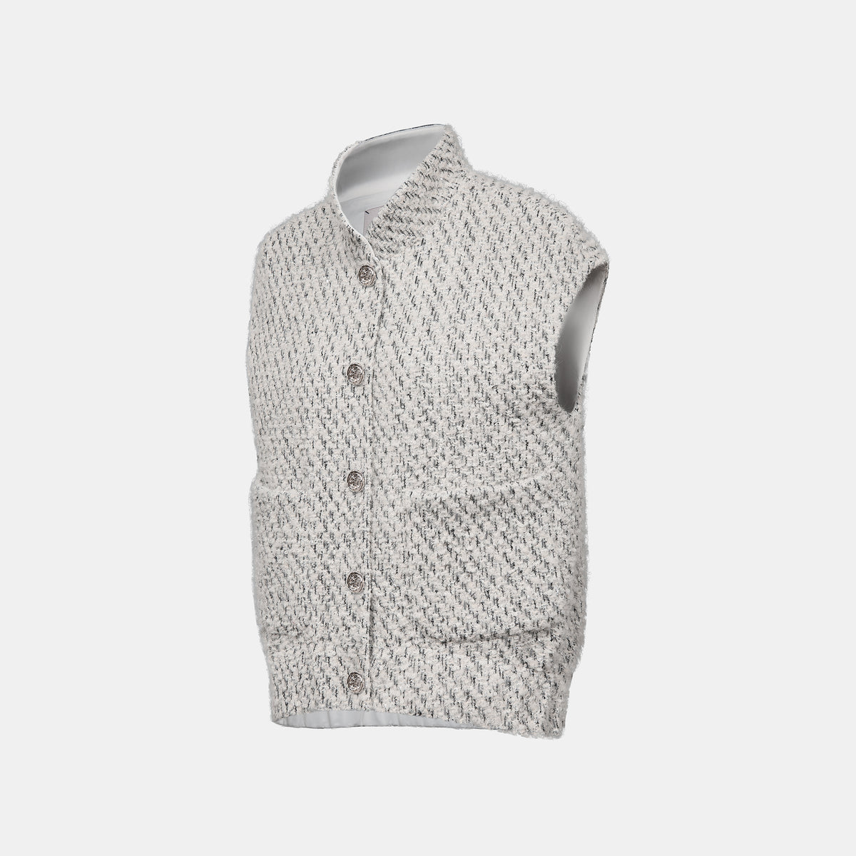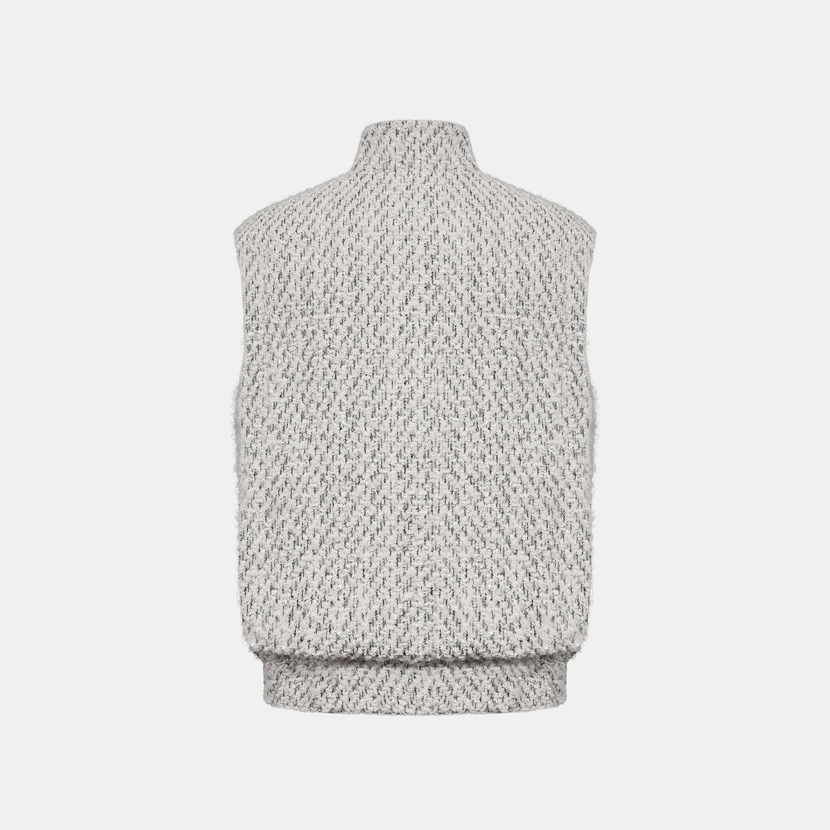 “Sloane Ave."法國高級訂製蓬圈銀織花呢Oversized背心—Silver Mist輕雪銀花