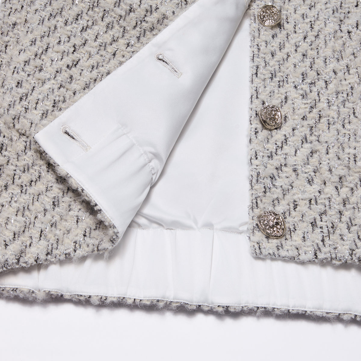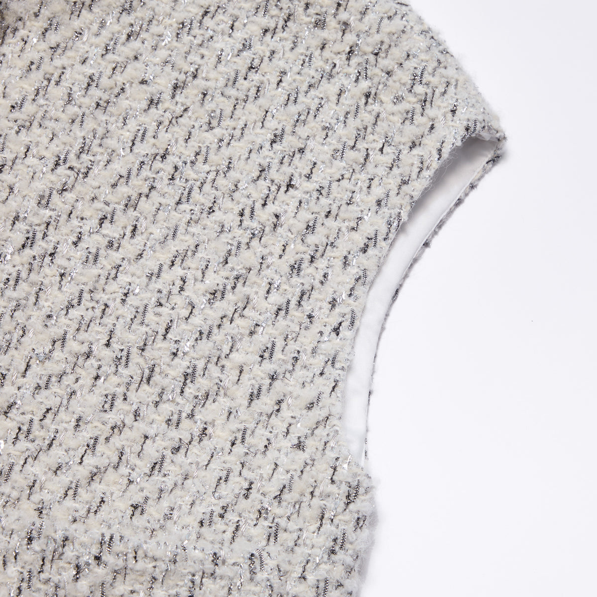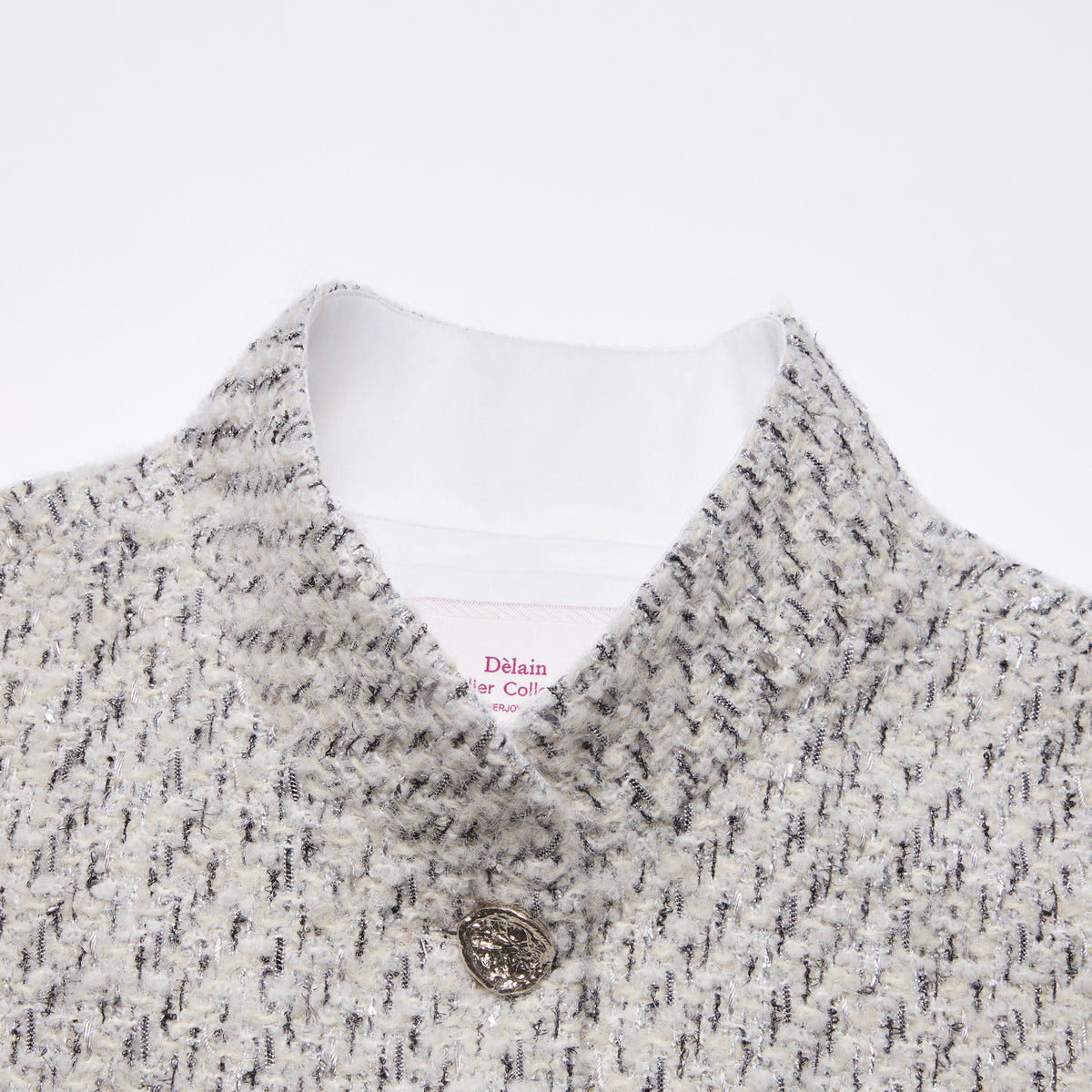 “Sloane Ave."法國高級訂製蓬圈銀織花呢Oversized背心—Silver Mist輕雪銀花