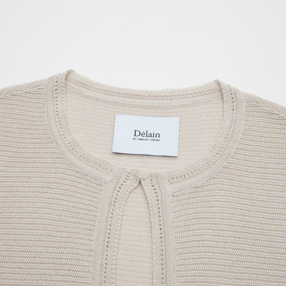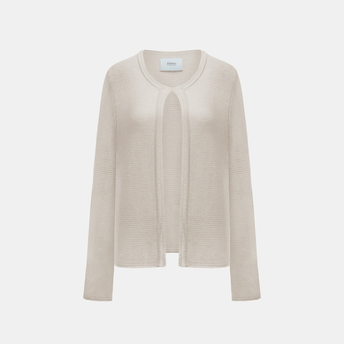 “Spring Diary”真絲長絨棉細針柔感星點針織開衫—Morning Frost 晨霜微光