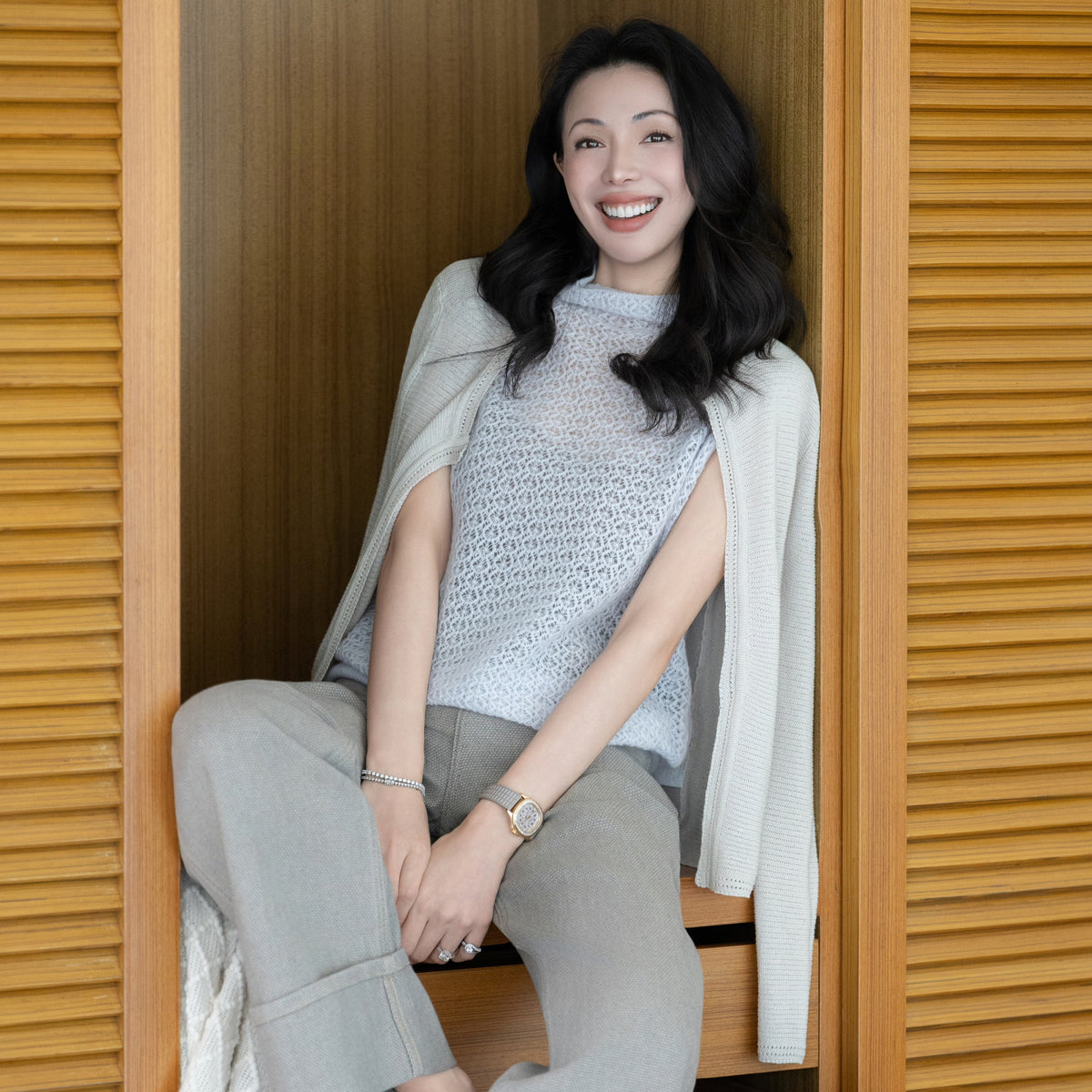 以細緻柔軟的針織質地勾勒春日輪廓,輕盈貼膚卻保有結構感。微閃星點如光落於織面,隨步伐流動出低調光澤,開衫、上衣與裙裝皆展現靜謐而優雅的日常層次。