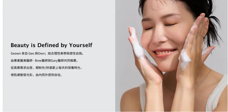Geown 為台灣專業保養品牌,由醫師與專業醫美團隊共同研發,專注於提供「溫和有效、成分清晰」的日常保養品。產品設計結合臨床經驗與肌膚屏障修復觀念,強調穩定膚況、提升肌膚健康力,已廣泛應用於科學美容療程後與日常保養中。