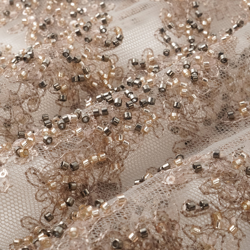 歐根紗由極細緊密的絲線或合成纖維織成,透明卻堅挺,能營造層次與空氣感。它的最大特點是「輕」與「挺」並存——能夠撐起裙襬的輪廓,卻又幾乎沒有重量。無論是婚紗、晚禮服還是舞台服飾,歐根紗總能帶來一種夢幻的體積感。