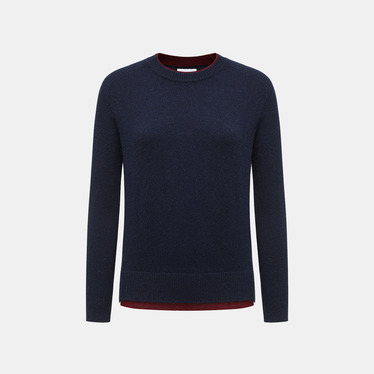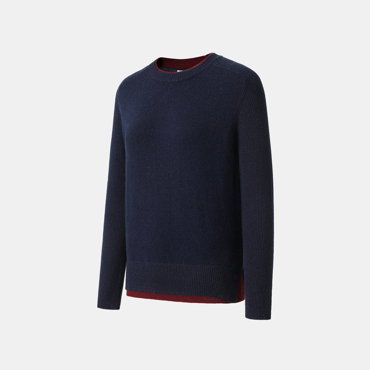 “Winter Diary” 100% Cashmere假兩件式羅紋拼接針織上衣—Velvet Navy靜夜沉藍