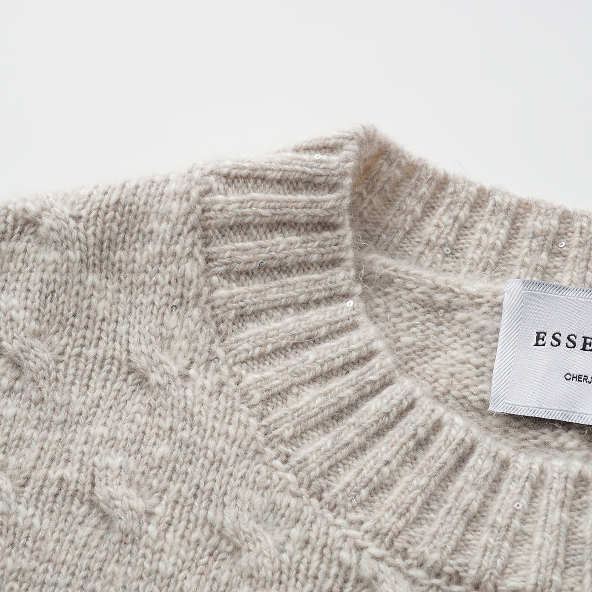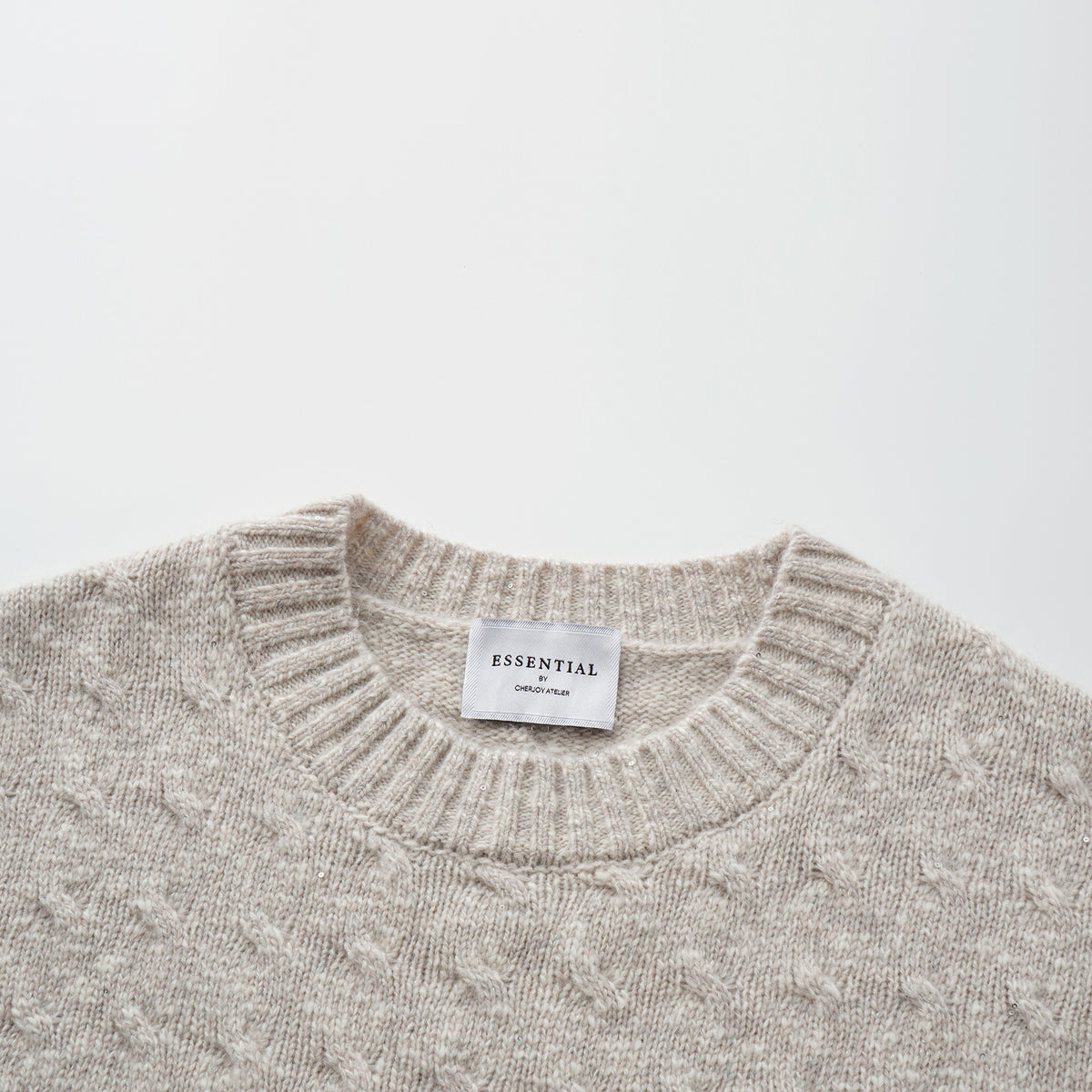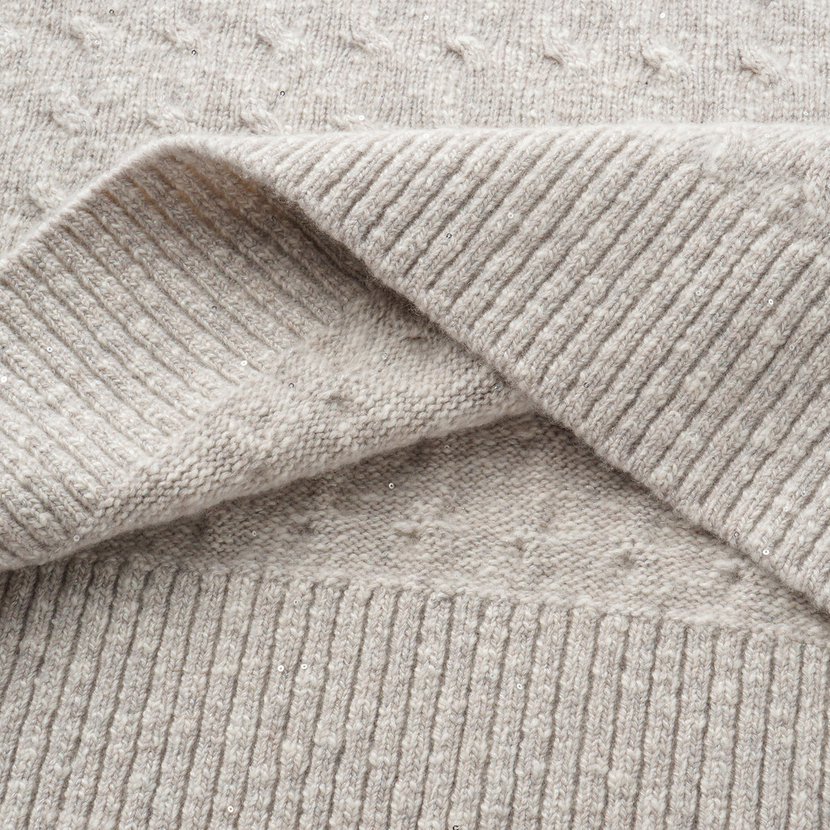 “Winter Diary” 100% Cashmere極細絨柔幾何浮織星點針織上衣—Fog Beige 霧幕杏灰