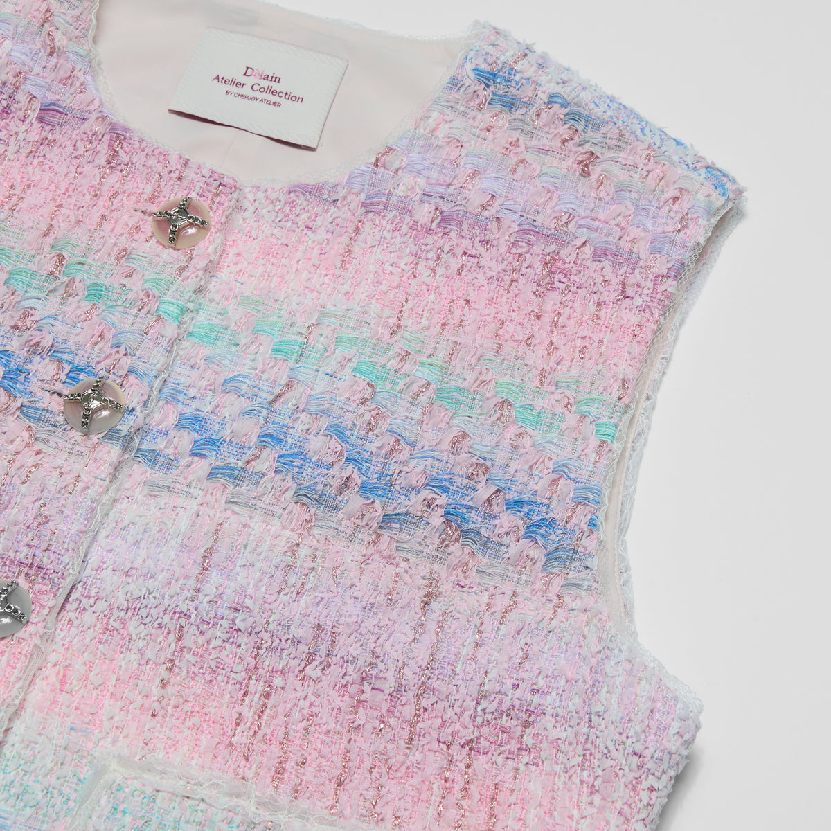 妳可以選擇將花呢外套搭配一件簡約素T與牛仔褲,輕鬆應對日常通勤;也能將精緻的立體蕾絲上衣與寬腿長褲搭配,在週末午後的藝文活動中展現層次品味。這不僅是一套衣服,而是一種「高級但不遙遠」的穿衣態度,是妳風格語彙的延伸,而非束縛。