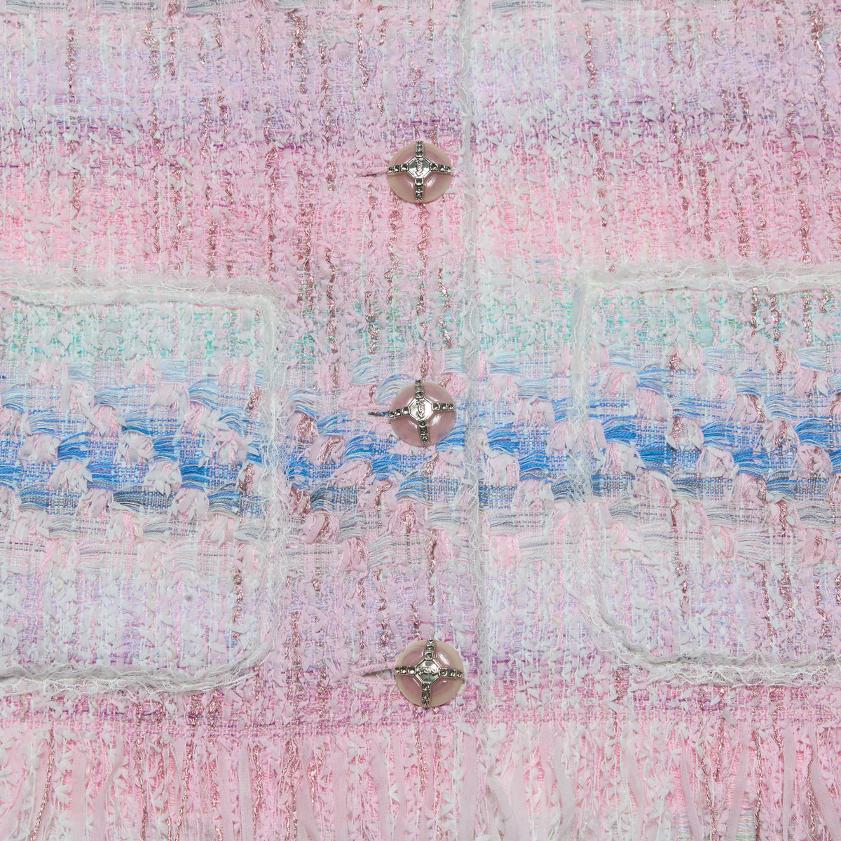 首先在面料選用上,此系列嚴選來自義大利、法國等地的頂級供應商——包括有百年歷史的刺繡工坊與頂級花呢廠,確保每件作品的觸感、光澤與垂墜度皆達到精緻層次。輪廓設計則考量東方女性身形比例,並強調「舒適與挺度並存」,在修飾線條的同時保留動態空間,讓穿著者在優雅中自如移動。