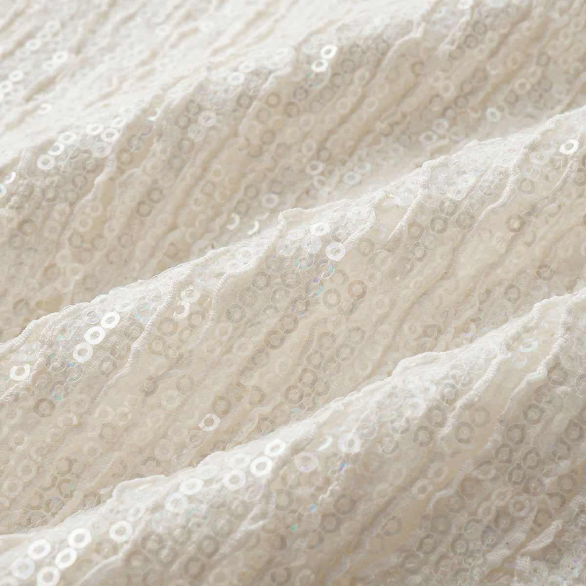 歐根紗由極細緊密的絲線或合成纖維織成,透明卻堅挺,能營造層次與空氣感。它的最大特點是「輕」與「挺」並存——能夠撐起裙襬的輪廓,卻又幾乎沒有重量。無論是婚紗、晚禮服還是舞台服飾,歐根紗總能帶來一種夢幻的體積感。
