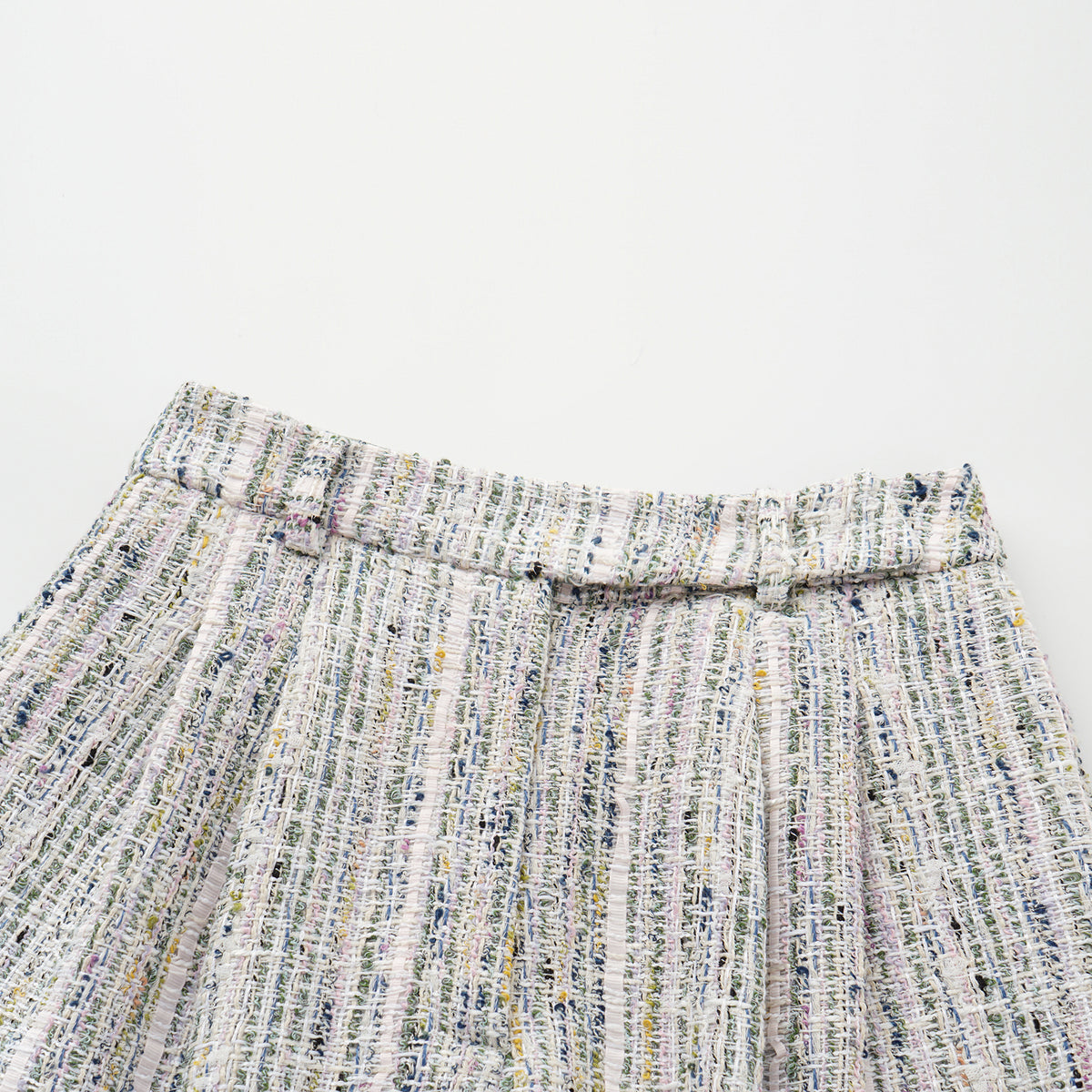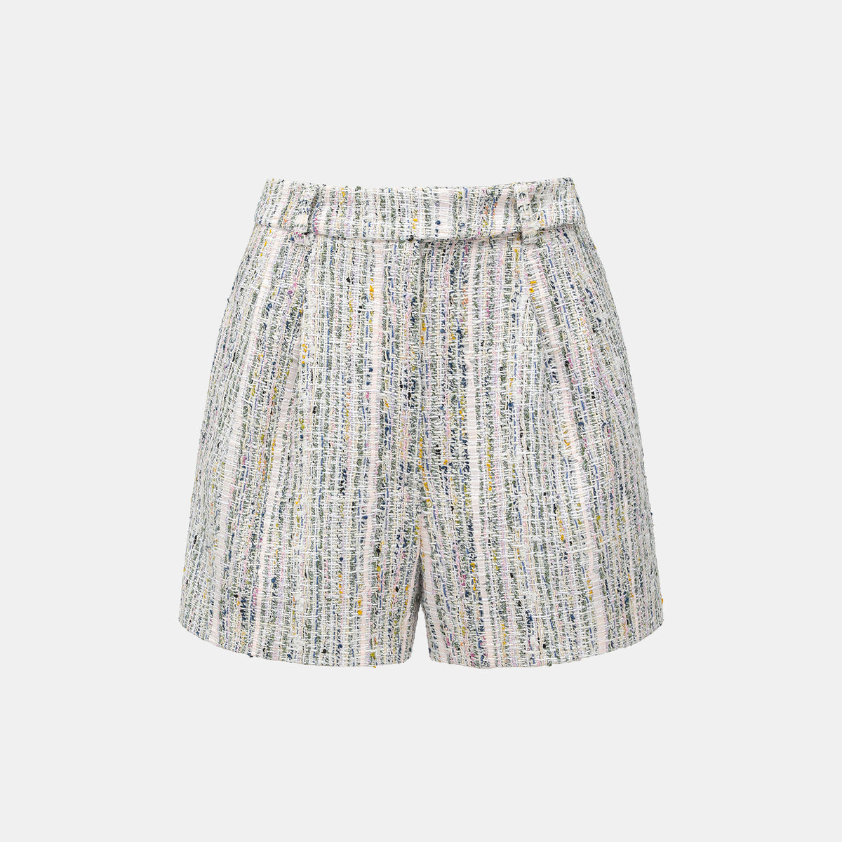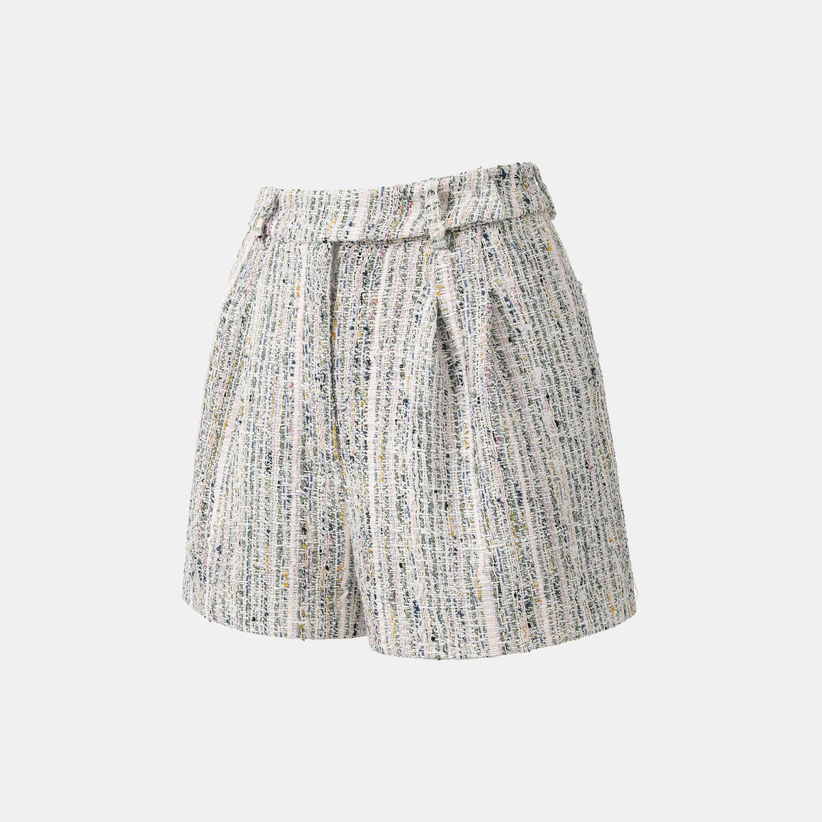 “Chelsea tea time.” 線韻肌理條織花呢短褲—Sherry de Rosée香露雪莉